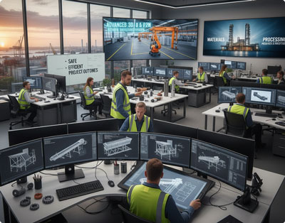 Modunex’s Design and Drafting division leverages the most advanced engineering software platforms to deliver precision, efficiency, and innovation for every project. Our team utilises industry-leading tools including Tekla, Bentley ProStructures, Inventor, SolidWorks, Revit, AutoCAD, and NavisWorks, enabling us to create highly accurate 3D models, detailed fabrication drawings, and comprehensive project documentation for structural, mechanical, and piping applications.